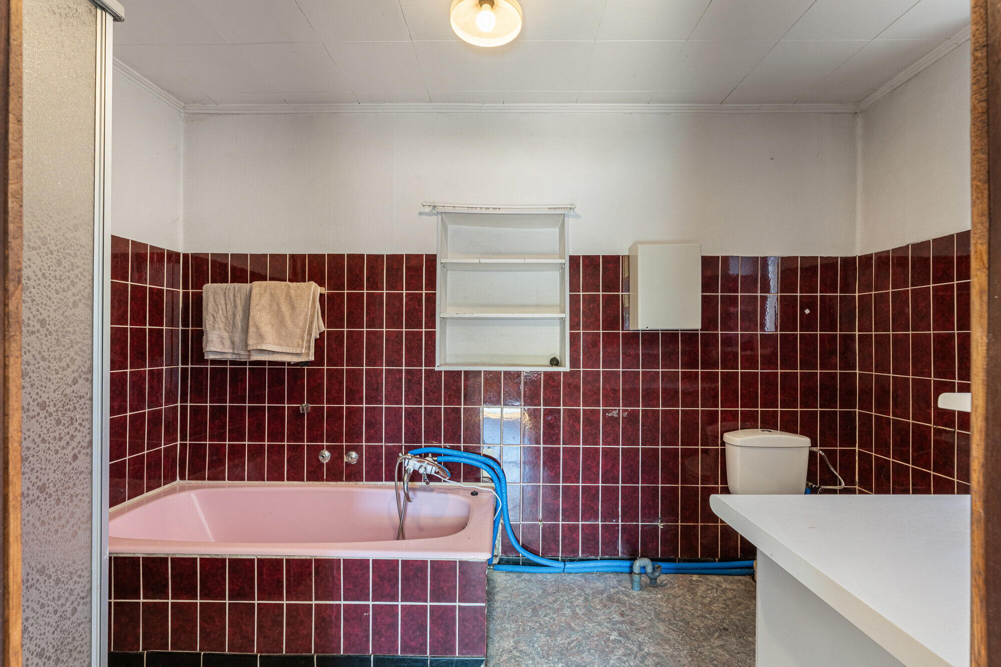 - Badkamer met enkele spoelbak, toilet, douche, ligbad;